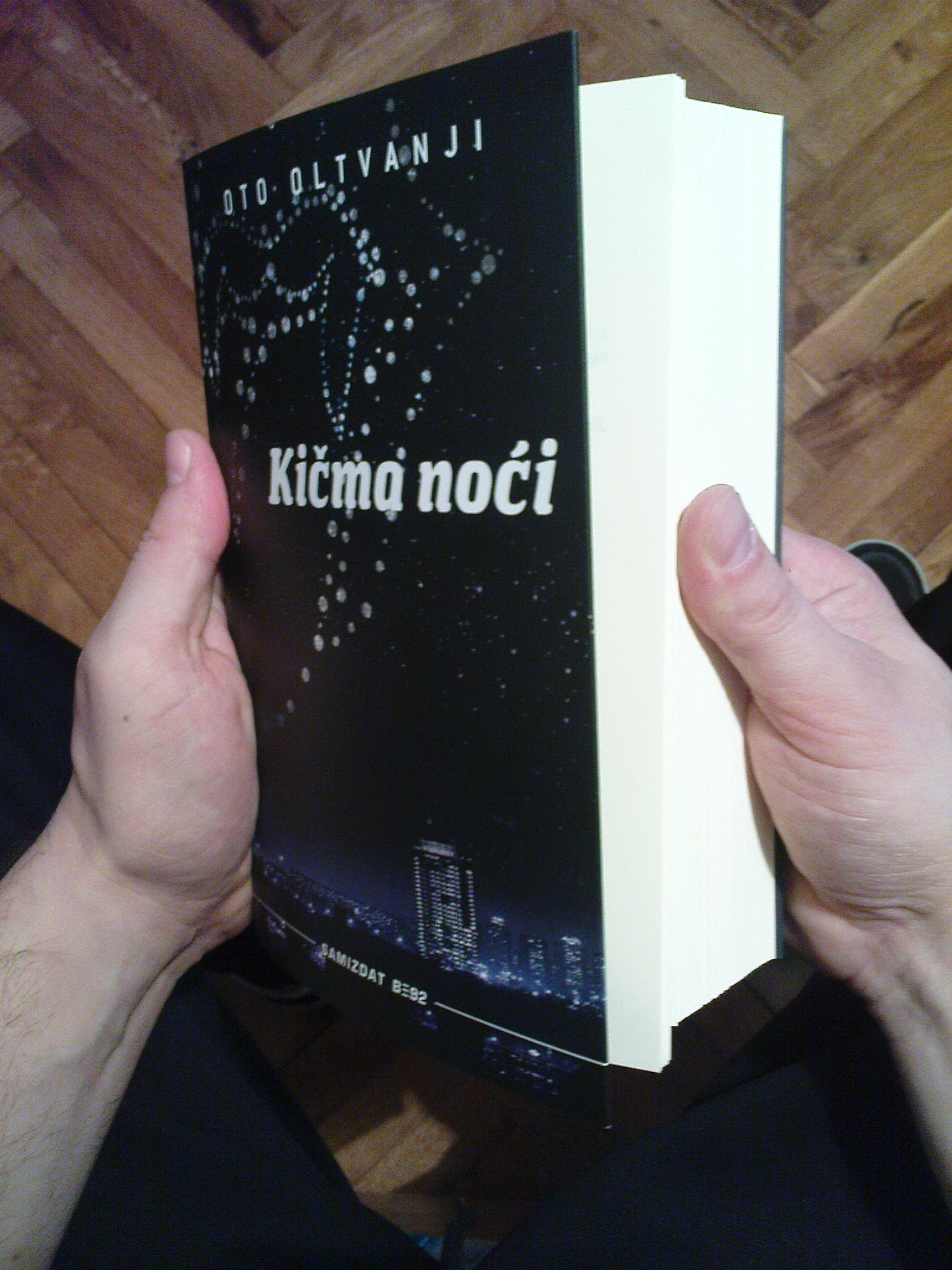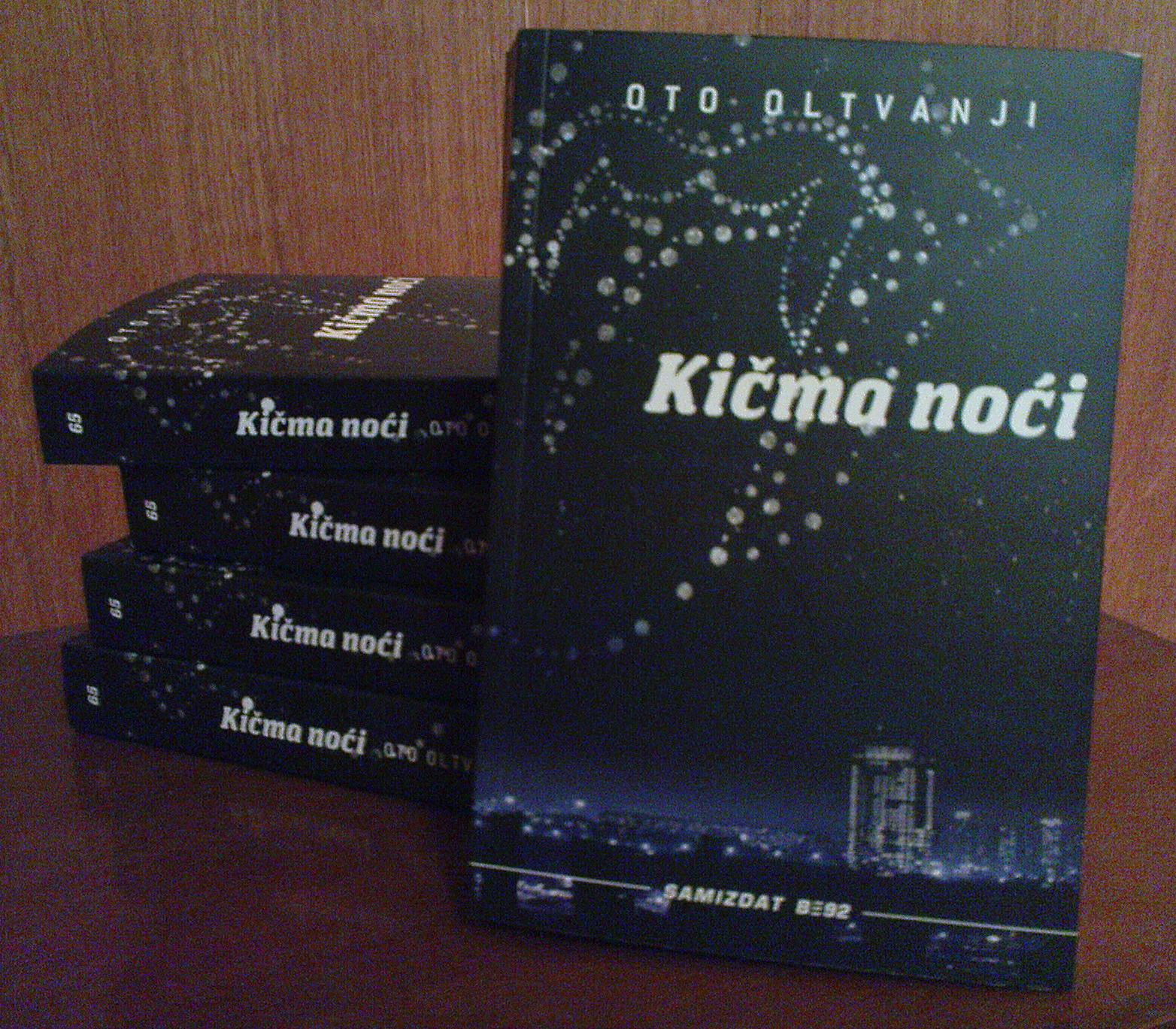 U jednoj od prethodnih verzija, na korici je preovladavala ljubičasta, što mi se posebno dopalo, jer ta boja nije prečesto korišćena u Samizdatovom katalogu. Volim i da kažem da je ljubičasta u modi ove sezone (Damir je se setio pre nego što je video omot za Kingov Under the Dome). Elem, “autor ilustracije na korici” je poslednju verziju malo više zarcneo, i tako smo, bar mislim, dobili na ozbiljnosti i neagresivnoj upadljivosti. Na stranu što je, pre i iznad svega, ovo jedna noćna knjiga.
